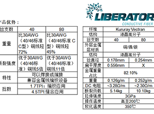 lyofil 166鍍銀導電纖維或liberator 40鍍銀導電纖維編織的防波套有著柔軟、重量輕、電磁屏蔽效能更高等特點,三種專利纖維材料Lyofil®、Liberator®和X-steel®可以滿足不同溫度、環境、強度和重量等特定位置的要求,其表現出標準鎳銅編織線所無法比擬的性能指標: